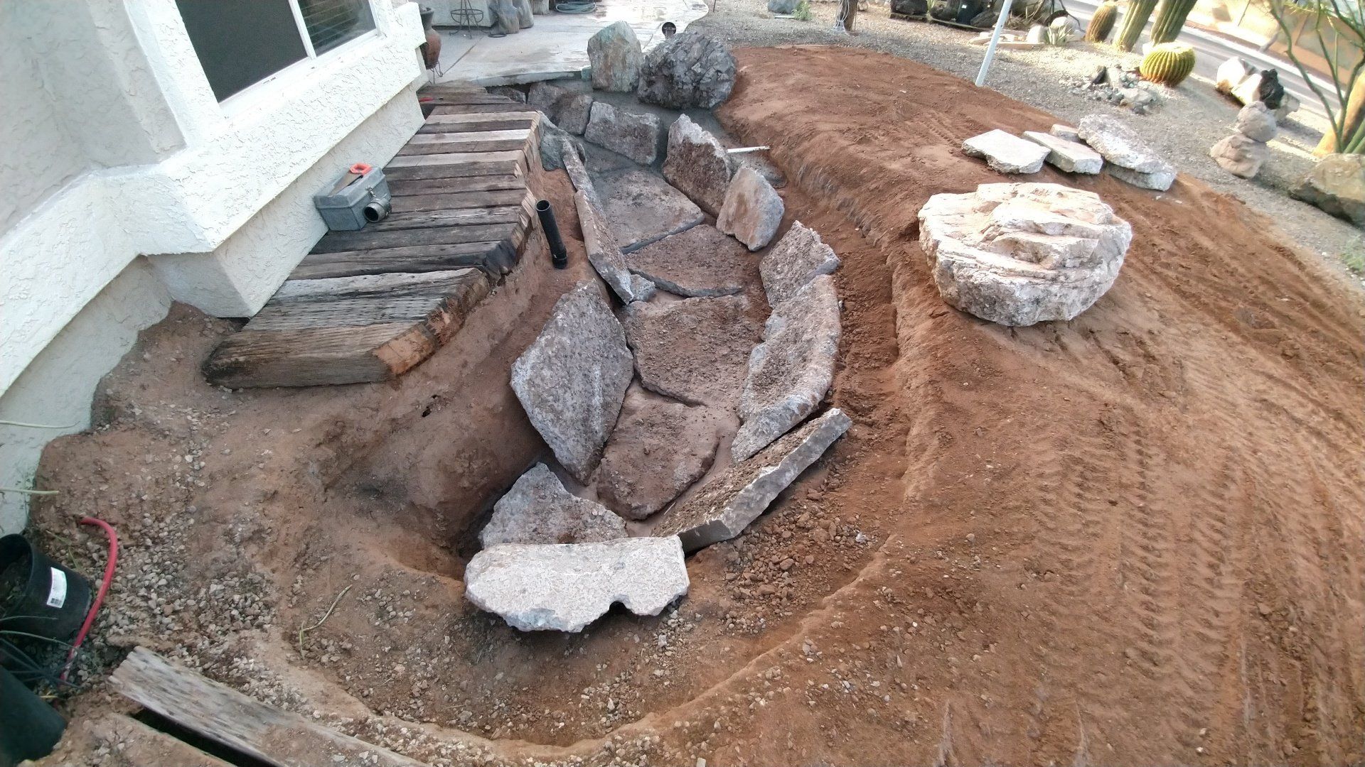 At God's Green Earth LLC., we can create you a custom water feature, be it a fountain or koi pond or other custom water features using reclaimed materials or natural stone to bring the soothing sounds of water into your yard and to create an oasis in the desert for birds and wild life.
